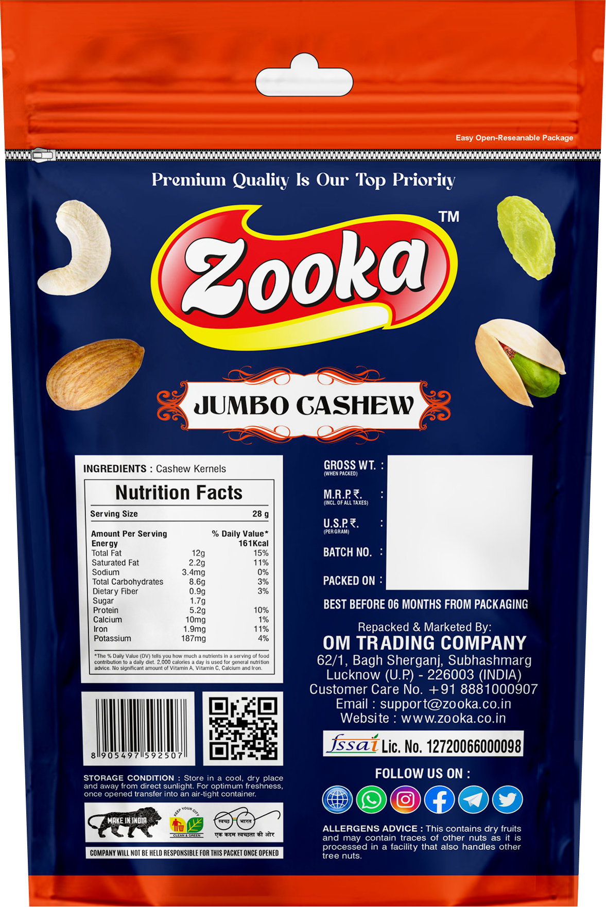 Our jumbo-grade cashews are handpicked and carefully sorted to ensure only the highest quality reaches your table. They have a smooth, buttery taste and a satisfying crunch, making them perfect for snacking, cooking, baking, or gifting. Whether enjoyed raw, lightly salted, roasted, or incorporated into sweets and savory dishes, cashew nuts add a luxurious richness that elevates any recipe.